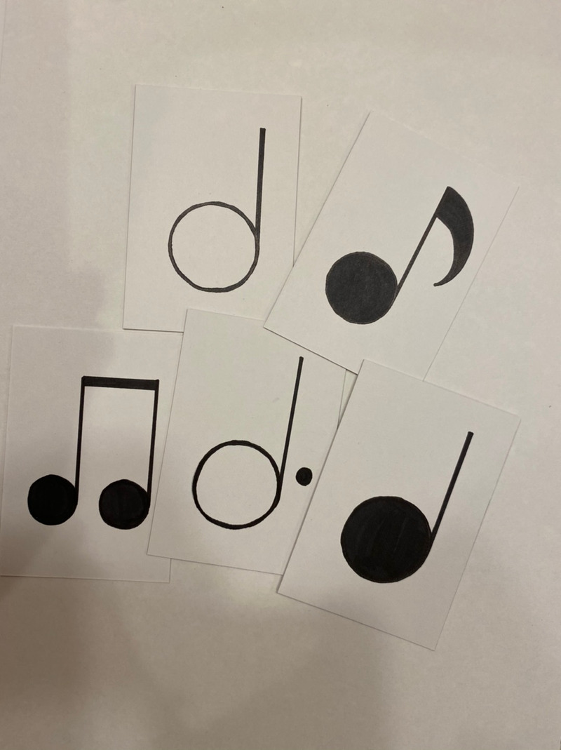 目で見て分かる、並べるなどの作業ができる、などなど、導入期の小さい生徒さんにはとても便利なんです。レッスンに通い始めでちょっとドキドキしている時でもカードは喜んでやってくれるので、レッスンをスムーズに始めるのにも役立っています。色々なカードをフル活用!